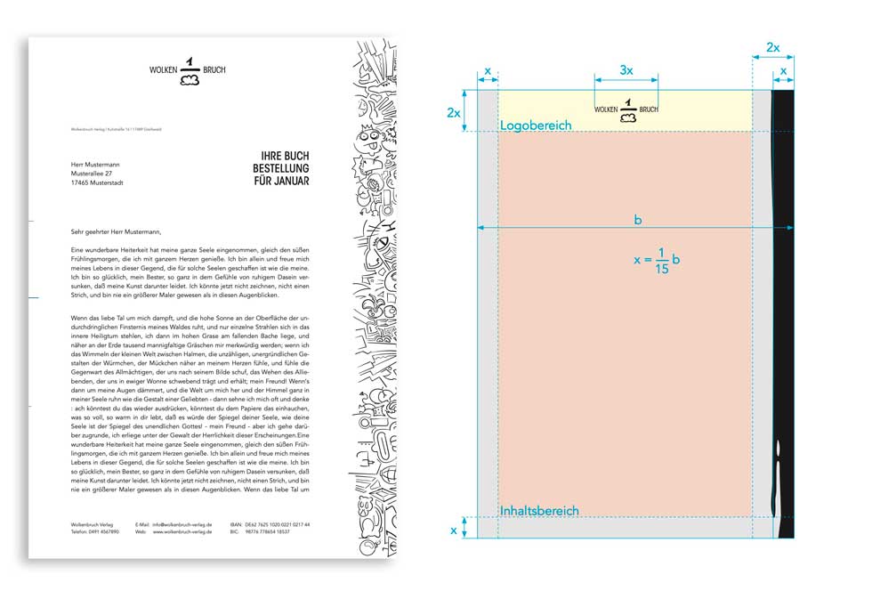 Die Aufgabe im Rahmen des Corporate-Design-Unterrichts war es, für einen fiktiven Buchverlag ein Erscheinungsbild angefangen von einer Wort-Bild-Marke über die Geschäftsausstattung bis hin zu den Kommunikationsmitteln zu erstellen.